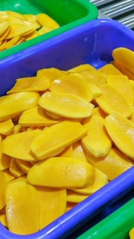 To ensure the perfect cut, we meticulously hand-peel each mango and slice.